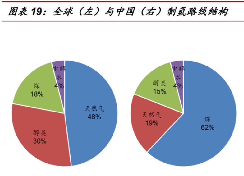 目前制氢技术路线按原料来源主要分为化石原料制氢、化工原料制氢、工业尾气制氢和电解水制氢几种。常规的制氢技术路线中以传统化石能源制氢为主,全球范围内主要是使用天然气制氢,我国由于煤炭资源比较丰富,因此主要使用煤制氢技术路线,占全国制氢技术的60%以上